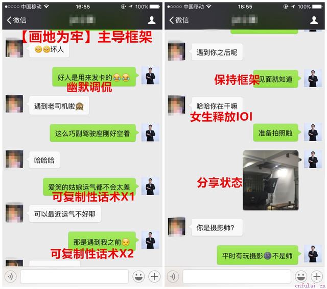 (抛出诱饵,当对方通过测试服从,表露出IOI,表明已经被你吸引)寓指:在地上画圈,囚人于内。在我们熟知的迷男方法当中,所提到的框架就是为了让女人逐渐服从于我们,但很多兄弟并不清楚或者理解错误框架的意义和使用方法。又或者它不能够完全适应我们的国内社交环境,特别是在社交软件的聊天当中,很容易失去框架。所以,我们無念团队在实践当中,总结出的适合国内女性聊天的一套方法,其中画地为牢就是教你如何分辨女性的框架避免掉进去,以及引导对方进入我们的话境内,掌握关系的主导权。