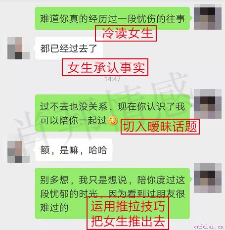 为了进一步挑动妹纸的情绪,学员接下来使用了另外一个技巧。上面刚说陪妹纸一起过,这样说有点小暧昧,妹纸正陶醉在这种关心体贴的小暧昧中呢,学员又把她从暧昧中拉出来了,说你别多想了,哈哈,是不是学员太坏啦。