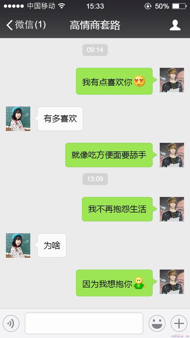 男:我和你在一起是有图谋的 女:图什么 男:想图你的一辈子