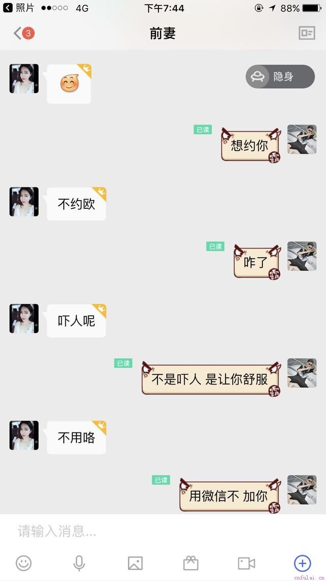 妹子回了一个表情,我就直接说了一句,想约你,妹子矜持的说不约哦,我就问咋了,怎么不约呢,妹子说吓人呢;那么,兄弟们在这里我们既然聊到这种状态,妹子说吓人,那么吓不吓人不重要,我说了不是吓人,是让你舒服,妹子又在矜持说不用咯,我说用微信加你把。兄弟们可以看到妹子一再矜持,聊到这里,妹子主动加了我,剩下的在微信上聊了几句,直接约出来愉快玩耍。这篇文章到了这里也完成了它的使命,如果,大家也是因为不会聊天,正面临感情的问题,想要挽回女朋友,想让妹子喜欢你,可以点击添加#微信#跟云哥进行一对一咨询,云哥会根据你的情况、妹子的不同性格,帮你进行全方面的分析,并且给你合理的付费服务建议。