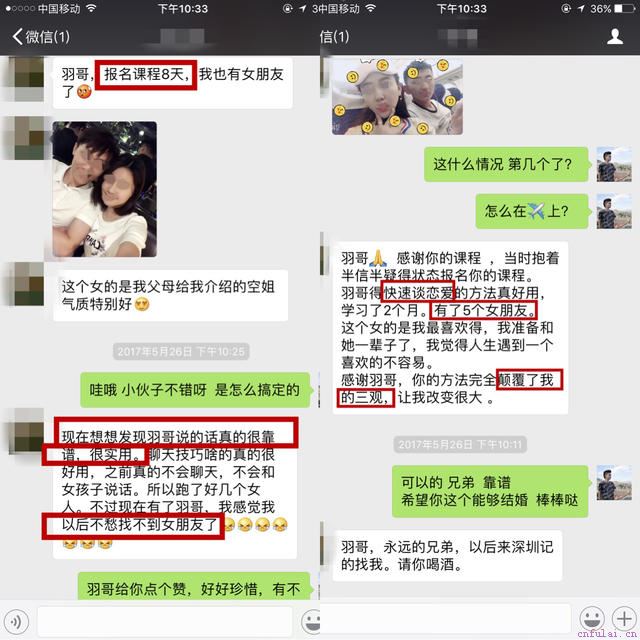兄弟,你能从开头一直看到这里,那么羽翼咨询师相信,你肯定是那种想要快速改变现状,快速提升自己的恋爱水平。也许你再也受不了和女孩子聊天总是聊死;也许你不想每次出去和女孩子约会都没有结果;也许你想提升自己、让自己变得更好。这些问题对于毫无恋爱经验的你来说,可能会很难。但是羽哥很负责的告诉你,通通不是问题!重要的你是否符合一下的三个条件:1.你一定要下定决心去改变自己,让自己变得更好2.愿意给自己投资,而不是只知道给女人花钱3.能够配合咨询师,有执行力,有行动力,而不是只会说不会做的嘴炮侠。如果,你已经下定了决心,迫切的想要去改变现状,同时也愿意给自己投资,也能够积极配合咨询师,那么你就继续往下看。和女孩子交往其实是一件非常简单的事情,为什么呢?因为只要你是个正常人,能够有学习的能力,那你就能会把妹、学会恋爱技巧、学会和女孩子交往、提升自己的情商、提升自己的恋爱能力。学员案例展示: