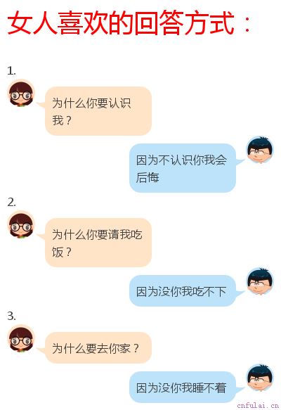再提醒大家一句话:即使是男性思维的回答,只要对方喜欢你的话也会被接受,但那往往是你的男性魅力已经把她吸引到位了的缘故,但纯粹作为沟通效果而言,还是用女性思维的回答会更让女人满意。还有一种也不错的回答,属于男性思维与女性思维的混合体: