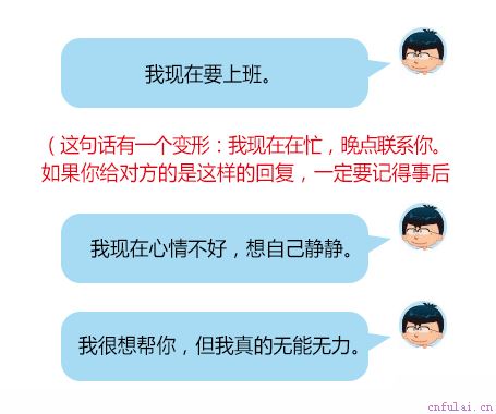 对于很多人来说,直接拒绝别人似乎是件很困难的事情。我们之所以不敢直接拒绝别人,就是担心我们拒绝会给别人带来伤害。事实上,更多的时候,给别人造成伤害的或许并非直截了当的拒绝,而是你模棱两可的回答和暧昧不明的态度。那些所谓的绿茶婊和渣男,最常用的不正是这样的套路么。除此之外,还有一种温和的聊天结束方式,叫做总结式回答。
