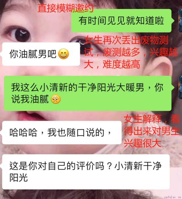 要记住,女生发一句,你也发一句;女生发多少个字,你也差不多发一样的字数,保持平等就差不多。千万不要出现你发一大段,别人回一个字的情况,这样不仅不平等,而且女生会挑选她感兴趣的问题来回答你,略过你的问题,这样你就得不到你想要的信息了。比如你说我在住在xxx,你家住哪呢?接着又突然说我看你朋友圈的猫猫好可爱啊,你养的吗?。女生肯定会略过第一个问题回答你的第二个问题,就当没有看见第一个问题一样。