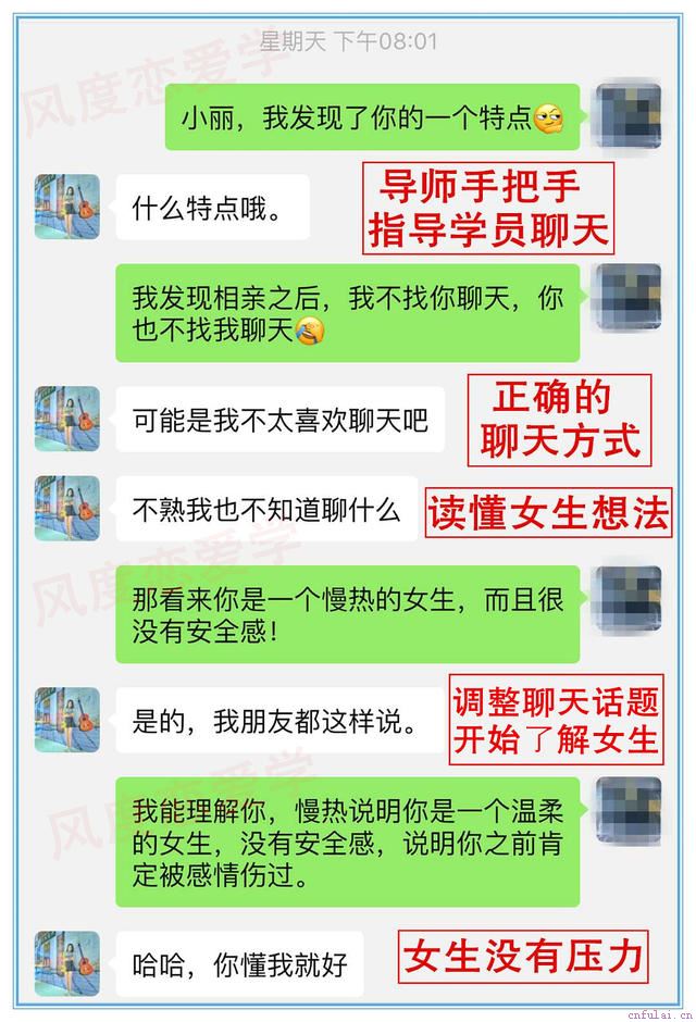 兄弟,你能从开头一直看到这里,那么风度导师相信,你肯定是想要快速改变现状,快速提升自己的聊天水平,追到自己心爱的女生,收获美满的爱情。也许你再也受不了和女生聊天总是聊死,也许你不想每次聊天都没有结果,也许你想提升自己,让自己变得更受女生欢迎。这些问题对于毫无经验的你来说,可能会很困难。但是,风度导师可以很负责任的告诉你,只要你成为我们的学员,这些通通不是问题,下面就是我们学员的案例: