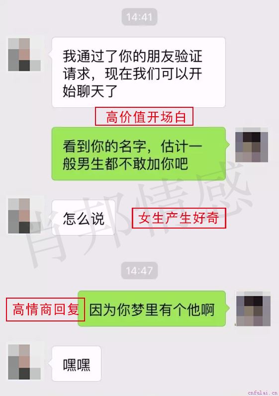 这是学员在微信上加的一个妹纸,学员看到她的微信名称之后,说的第一句话是:看到你的名字,估计一般男生都不敢加你吧,学员为什么这么说呢?导师在《聊天大师》里说:价值产生吸引,你的任何一句话都能彰显你这个人的价值高低!