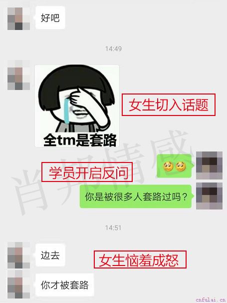 学员为什么会这么说呢?这里面又有讲究啦!哈哈,导师给你分析下,既然妹纸你说我这是套路,那你怎么识别出我这是套路的呢?你是被很多人套路过才能识别出我这是套路吗?如果说你不是被很多人套路过,那你就不能说我这是套路,诸位兄弟,你们想想是不是这个道理?如果接下来有妹纸再说你是套路,你知道该怎么回答了吧!