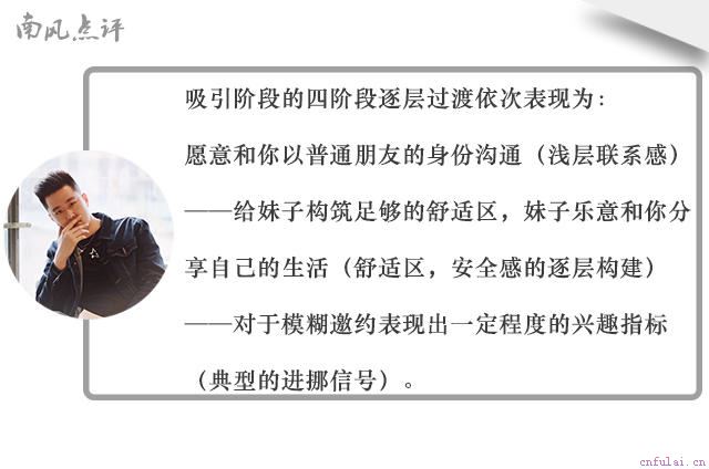 有很多兄弟在这个阶段没有和妹子过渡好,很容易和妹子误入友谊区。为什么很多人容易被戴上老实人或者是老好人的帽子呢?那是因为初期吸引力逐层过度没有把握好,不会逐渐进挪话题的深度,而这时如果你突然有一天对妹子表白,妹子当然会说:你是个好人,但我觉得我们不太合适。