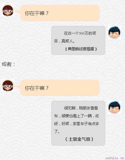 什么是硬价值?硬价值,就是你的金钱 、房子、车子等等物质基础,比如,你是高学历海归,你是某家大公司的高管,你有几辆车,你家里有几套房子 ,你爸爸是XX局局长这些就是你的硬价值。在聊天中,面对硬价值,经常会有以下两种情形: