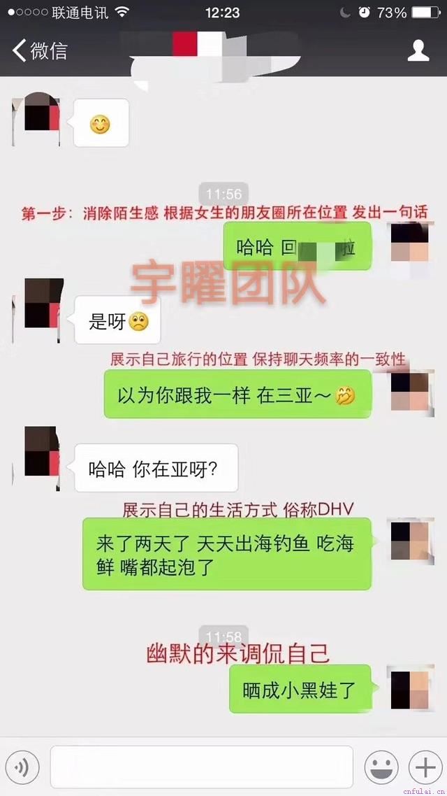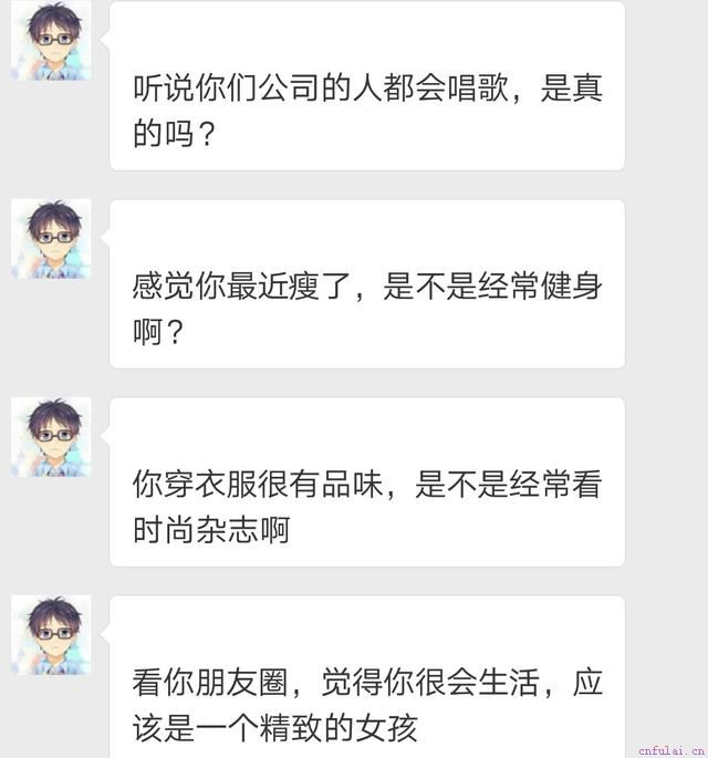我们加了一个女孩子的微信后,需要去想该如何去聊,计划好每一步,正所谓第一印象很重要,万事开头难,如果开始聊天你没有吸引她,那接下来就困难的多了。开始聊天阶段你需要做的就是:破除女孩子的防御。非常多的兄弟加了一个女孩子的微信后,你开始暴露需求,疯狂的短信轰炸,甚至是语音轰炸;更有的人聊天一问一答:下班了吗,吃饭了吗,工作了吗,到家了吗。夺命追问。女孩子看了,会觉得你是坏人,对你防备心更重了。