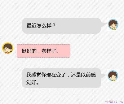 这句话回复之后对方的心理活动是什么样子?我变了?哪里变了,长得好看了?还是性格变了,他什么意思啊。,你变了这是推,人都喜欢被人说成是不忘初心,说变了就是在释放一个讨厌的气息,而还是以前好无形之中又增加了对对方的肯定,这就是拉。一推一拉之间,好奇心就出来了。