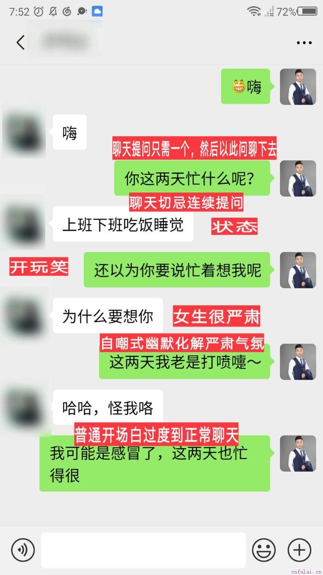 你不觉得一个女生听到这样的话就像家常便饭吗,那既然是家常便饭,还会觉得有意思吗?肯定不会,所以,一个真正好的赞美是能够激起女生感觉的赞美,赞美要恰到好处,而且是她几乎没有听到过的赞美。想要学习的兄弟们添加我的微信#微信#,另外我的朋友圈也有大量实战案例解析和聊天技巧分享