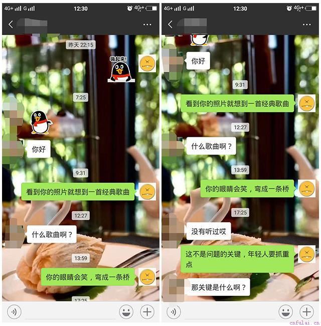 看到你的照片就想到一首经典歌曲通过刺激女生的好奇心,瞬间吸引住女生的注意力,开启话题的同时也放大了她跟我聊天的兴趣,让聊天能够更好的延续下去。不管你跟女生认识多久,发展到了什么程度,你们都可以利用这个技巧去开启话题,跟女生进行情绪互动。