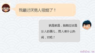 跟女生聊天时,当她说了一些你不认同的话,你会怎么回?记住,千万不要反驳她,否则没有好下场的。比如女生说,我最讨厌男人吸烟了,臭死了!你要是突然忍不住站起来替吸烟男同胞伸冤,对她嚷嚷道:你们女人屁事比我们还多,我吸烟怎么了?女生保证提包走人,那要怎么做呢?教你一招,先假装附和她,然后再踩她。