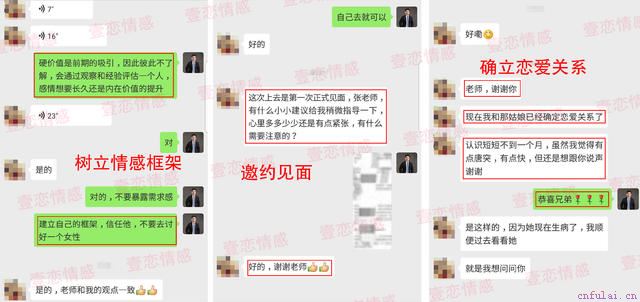 和女孩子交往其实是一件非常简单的事情,为什么呢?因为只要你是个正常人,能够有学习的能力,那你就能会;你只要学会恋爱技巧、学会和女孩子交往、提升自己的情商、提升自己的恋爱能力。部分学员案例展示:
