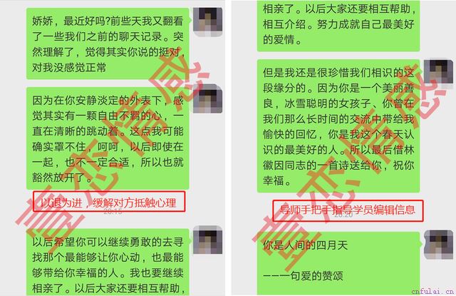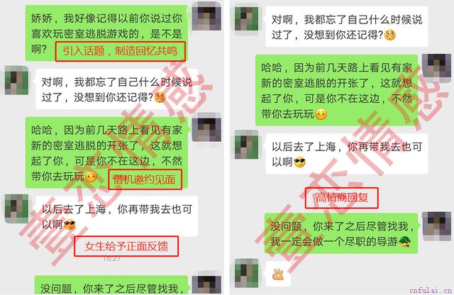 不出意料,就在之后,我们的联系反而又逐渐增多。利用之前学习体会到的那些心态建设和聊天技巧,明显感觉时移事宜,她渐渐的对我们的聊天越来越有兴趣,甚至是感觉都被我吸引了。转眼一个多星期过去了,我很想请她来背景玩,又怕基础不够扎实,邀约不成反而尴尬。这时咨询师又提出用他的模糊邀约法,这样即使邀约不成也不会尴尬。更没想到的是,咨询师说这次会帮我代聊。