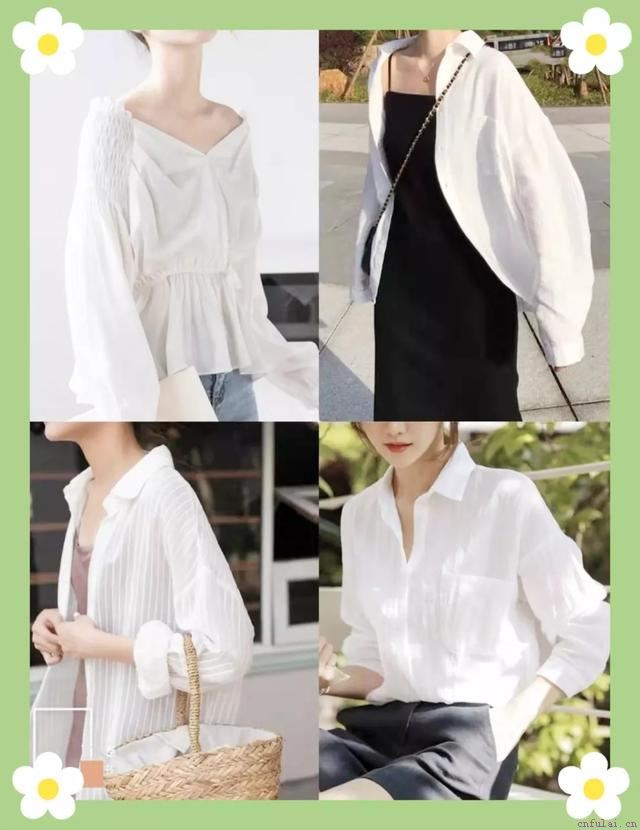 领口往下开,视线自然从肩膀落到了领口处,但切记不要买无袖款。就算不是V领,也可以解开几粒扣子达到V领的效果。藏住肉肉的肩膀,领口微低,性感又时髦另外也可以衬衫下摆打结,既提高腰线,又能露出相对纤细的腰部,营造瘦的印象。