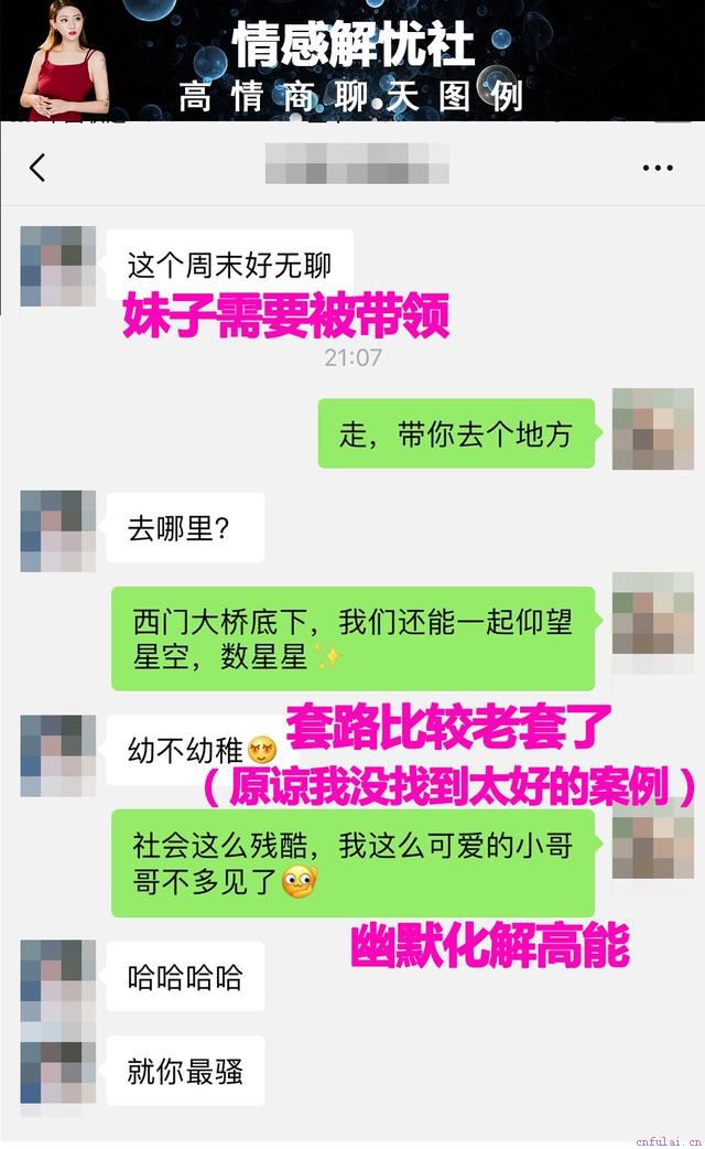 这几年我看过太多男孩因为自己的不会说话而断送了还未开始的恋情,我也看过太多的男孩因为无法理解女生的一些小心思而分手。这个世界上没有什么人是从出生就会聊天,也没有人无师自通,毕竟我们在这大千世界里只是沧海一粟,但是我们之所以存在的目的便是让自己这一生变的有趣些罢了。