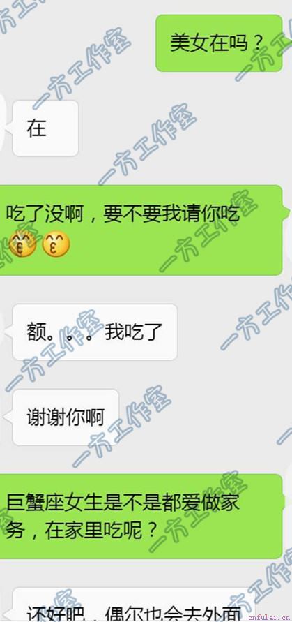那么,是不是就不该信星座呢?该,尤其你正处于追求期,那么研究星座是很有必要的,这样可以极大的节省你的做无用功的成本,比如铁哥正在追求的这个巨蟹座女生。作为一个资深星座达人,如果是我在追求的过程中,一定要会显露出我的长择意愿,对于温柔细腻,谨慎顾家的巨蟹女而言,她们看上的伴侣一定是有重视家庭,有责任感,稳重上进的男人,所以在聊天的过程中,一定不能出现那种轻佻幼稚的言论,你以为自己很风趣,人家只会觉得你是个渣男。