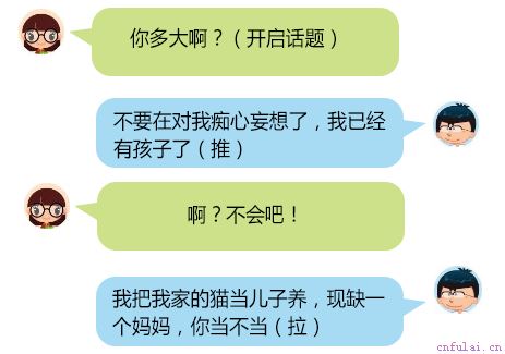 有句话说的好:冷落一个人,就是激发一个强烈情感的最好方式。同样的,在聊天中,强化一个人对你的好感,就要学会适时的冷落她,也就是善用推拉技巧,将她带入你的聊天节奏。我们可以看一些例子: