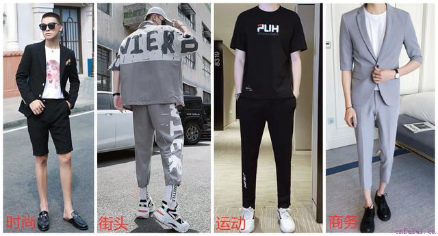 比较常见的穿衣风格有:时尚风、街头风、休闲运动风、商务风等。时尚风以韩版和英伦两大风格为主,衣服的版型会比较修身,对身材的要求比较高,有肚子或者大腿粗壮的兄弟,还是不要考虑了。街头风以朋克、嘻哈、潮牌为主流,衣服的版型都比较宽松,而且自带酷帅属性,比较适合,看上去就酷酷的兄弟,日常走阳光开朗小奶狗风的兄弟,可以酌情考虑。休闲运动风就比较百搭了,任何风格、任何身形的兄弟都可以在这个风格里找到适合自己的款式,主要以各大运动品牌为主,例如,阿迪达斯、耐克、彪马等,这个风格是我夏天比较推荐的穿搭选择,很舒服,出汗也不会有黏腻感。商务风比较适合出席正式场合穿搭,比如说商务会谈,会给人一种大气、稳重的感觉。