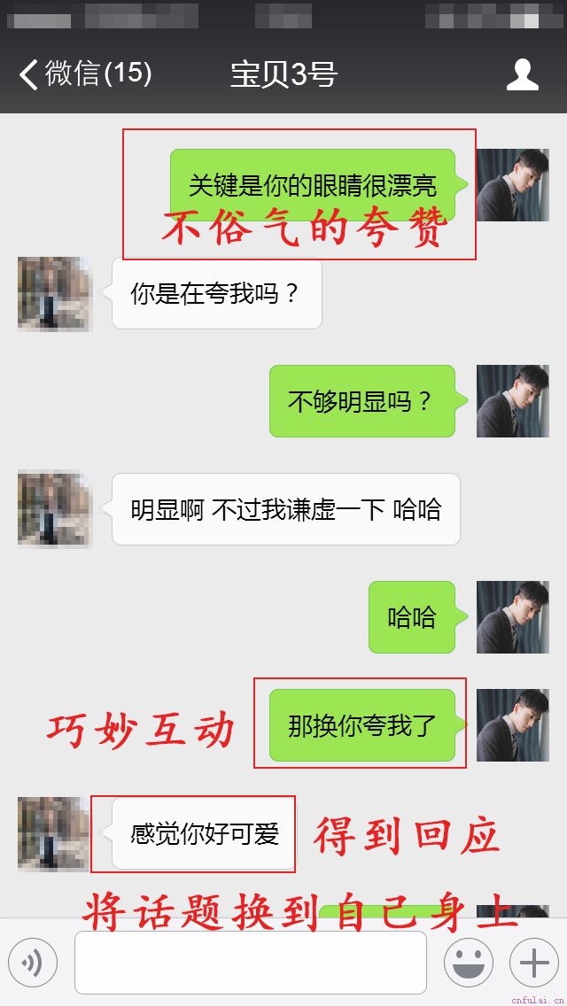 延伸话题,带动妹子情绪最还得办法就是:对她进行夸赞,但不是一味地奉承。因为刚开始话题的主体是妹子,如果我们的话题一直围绕着她的话,那么长时间,就会说嗯啊哦谢谢等等之类的回复,不仅无法产生互动,让她失去聊天兴趣,而且还会严重暴露需求感。所以后面我们需要把话题拉回到自身上,从而跟女生产生互动。