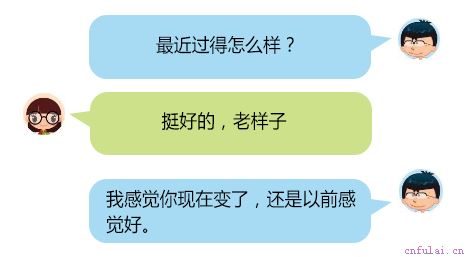 这句话回复之后对方的心理活动是什么样子我变了?哪里变了,长得好看了?还是性格变了,他什么意思啊。你变了这是推,人都喜欢被人说成是不忘初心,说变了就是在释放一个讨厌的气息,而还是以前好无形之中又增加了对对方的肯定,这就是拉。一推一拉之间,好奇心就出来了。以前你性格很温柔,现在感觉凌厉了。这样回答对吗?这样答了就等着被拉黑吧。记住,这里的推不是让你真的骂人家,只是为之后的拉做一个铺垫而已。以前你是小家碧玉的感觉,现在越来越像大家闺秀了。这话人听了多舒服,人都喜欢和让自己感觉舒服的人聊天,推拉的实际过程都是赞美,只是为了让聊天更顺畅罢了。