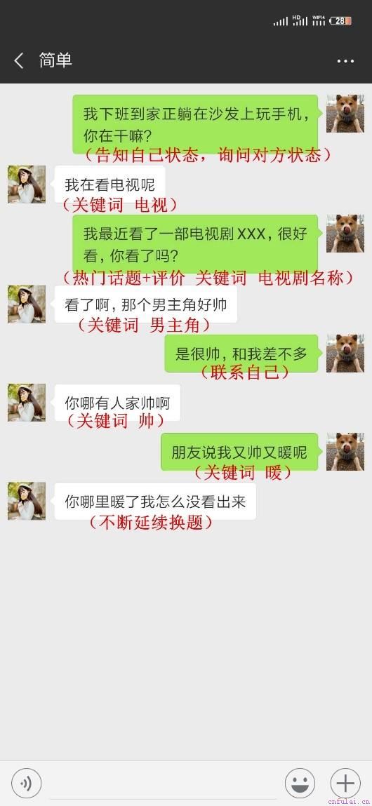 在聊天时抓住话题中的关键词,以便维持和延续话题。聊天是感性的,女生注重和一个人聊天时的感觉,和你聊天开心轻松愉悦,她才会愿意找你聊,才有动力和你继续聊下去,一定要给到对方想要的感觉氛围。关键词聊天法帮助你和女生有聊不完的话题。
