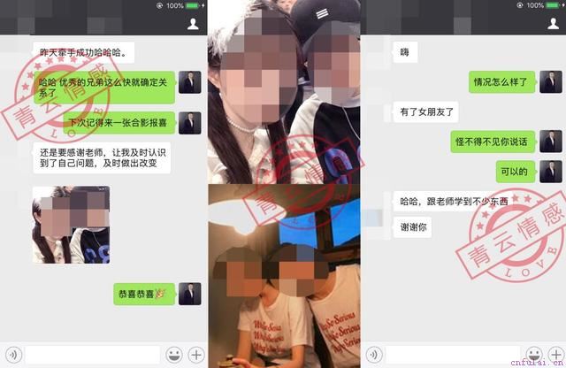 下面的例子是我们青云学员学习之后成功脱单的案例和感受,他们的例子告诉我们,想要获得成果是需要付出的,别人都在努力,如果你还不行动,你喜欢的女孩难道会主动来找你吗?只要你想结束单身,愿意改变,就来找我们,我们帮你解决问题。