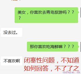 什么叫放式聊天延伸法,如果女生对你的聊天开场没有兴趣,那么她只会是/不是,嗯、哦这种词语回答你,让你不知道怎么接下去,也不知道怎么继续找话题聊下去,然后关系不了了之。其实我们可以从不同点去切入,比如:星座、动物、旅游地、兴趣爱好等等等等都可以作为什么聊天延伸的开场。错误示例: