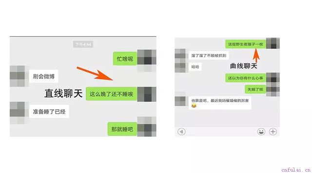 在我们的日常聊天中,总会忽略到一个问题,聊天的时候就像给领导汇报工作一样,有什么说什么问一句答一句,力求用最简洁的语言把事情说清楚,然而在和女生的聊天中,这种方式是不对的。聊天的时候,我们心里有一个框架,要问什么事,或者要说什么事,也就是聊天中的主线,通常情况下,我们将这种主线称为聊天中的直线。而那些与主线话题无关的话,用以调和气氛的话,是聊天中的副线,通常情况下,我们将这些话称之为聊天中的曲线。在聊天中,不能只有主线,因为这样会让对方认为你是个沉闷,没有什么幽默感的人,一昧的一本正经说话,也会让对方丧失了与你聊天的兴趣,我们需要曲线来为聊天中增加一些气氛,祛除聊天的不舒适感。