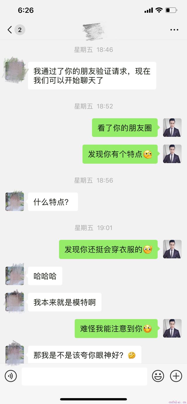 好奇开场白就是你发一句话勾起女生的好奇心,给她留下疑问,她下意识的就会去寻找答案,自然而然她就会回复啦,还会觉得你这个开场白挺有意思与众不同。我们直接看一个导师和一个小模特的聊天截图案例:
