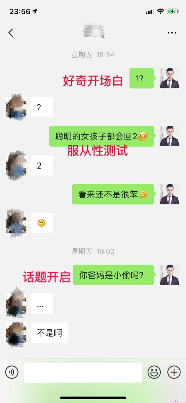表情开场白可以很好的帮我们测试出这个女生现在有没有聊天的欲望。闲聊的前提是闲,如果女生没有回复我们消息,我们就不要再不停地追发信息了,因为女生不想聊天的时候我们还死缠烂打,会给女生心理上带来压力,让她觉得我们是一个很烦的人而反感我们,还会让我们在和她的这段关系中处于更低更弱势的位置。
