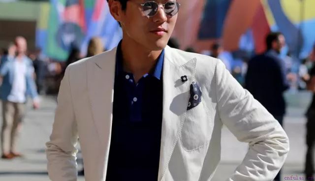 很多男生对跳跃的色彩会略有抗拒,他们会认为抢眼的亮色会过于高调。如果想低调地抓眼球,海军蓝是不错的选择。作为万能的颜色,海军蓝完全不挑人,任何单品配上宝蓝色都会显出独特的高级感,散发着成熟型男的独特魅力,年轻boy穿上有一股干净的清爽感。相比于传统的黑色西装,海军蓝西服往往带着个性和耐人寻味的味道,很适合25+的商务人士,自然而然能穿出精英的气场。与海军蓝为之绝配的是米白色,米白色介于白色和驼色之间,在商务人士的休闲装中,常见米色的身影。海军蓝x米色,深浅色调层次分明,这个配色很适合有肚腩的男士,既有格调又显瘦。