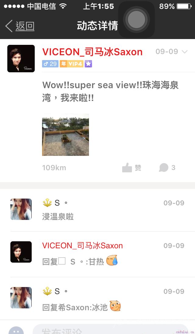 之后我没有继续纠缠在动态的对话,直接开始私聊她,你很喜欢温泉吗?大热天的都能想到泡温泉大家就开始谈着各自旅游的一些点点滴滴,互相发着旅游相关的图片,我用语音绘声绘色地描绘着美轮美奂的画面与当时享受的感觉,接着也做了一些心理测试,了解了她对自己生活状态的感觉、评价,表达爱的方式,择偶概要,性态度等等,她很快水温越来越高。聊了1个多小时,实在聊得很开心,时间不知不觉地过去了,可太晚、太累了,就去洗洗睡了。