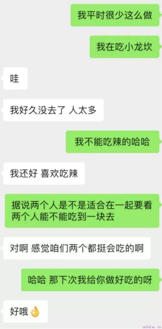 如果更延伸一步的话,可以从美食延伸到家务上,可以问一问对方平时你会做饭嘛这样还可以多一层长期筛选的意味。