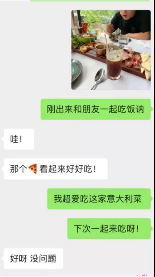 平时不知道该怎么进行话题开场,也可以随手拍一张自己吃饭的照片发过去,很容易引起共鸣。