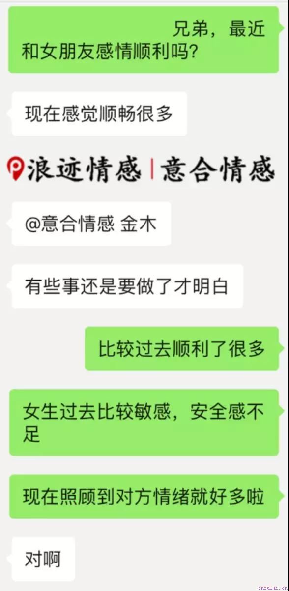 前面在服务的学员,后续经过指导沟通,以及和女生实际相处中的问题反馈,慢慢的成长为一名能够正确经营长期感情的男生。