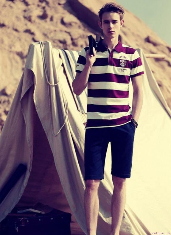 春季夏季里黑皮肤的男士大方穿起玫瑰红条纹T恤来吧,搭配起休闲的深蓝色短裤,让黑皮肤男士看起来十分高挑,干净利落,玫瑰条形的上衣遮挡黑皮肤的不足之处,强烈推荐给黑皮肤男士哦。