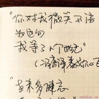 【7】:不知道喜欢你什么,实在不知道,如果确定知道喜欢你什么,是不够喜欢你。因为不确定具体喜欢你什么,所以喜欢你所有一切及其他。 –冯唐 《不二》
